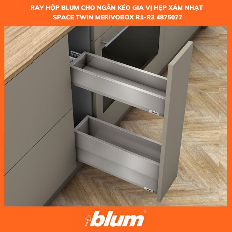 Gia vị Blum SPACE TWIN MERIVOBOX R1-R3,rộng 150-300mm,4875077, xám nhạt