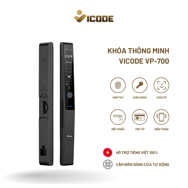 | Quản lý bằng mật khẩu chủ và mật khẩu người dùng Managed by master password and user password Có thể thay đổi linh hoạt giữa 2 chế độ khóa tự động và thủ công. Auto/Manual locking mode is changeable. Khóa sẽ tạm ngưng hoạt động trong 2 phút sau khi nhập sai khuôn mặt/mã/vân tay/thẻ từ 5 lần liên tiếp. If incorrect face ID/fingerprint/PIN code/Card are attempted 5 times in a row, the related verification method will be lockout for 2 minutes. Điều khiển bằng giọng nói qua Amazon Alexa, Google Assistant Work with voice control service Amazon Alexa, Google Assistant | Tích hợp khả năng chống sốc điện Electric shock resistance Chức năng chống sao chép mật khẩu bằng cách sử dụng kèm mật mã ảo A password can be entered with a random number to prevent stealing Có thể kích hoạt chế độ yên lặng khi cần thiết Silent mode can be activated when needed Hướng dẫn cài đặt bằng giọng nói (Tiếng Anh / Tiếng Trung) Voice guidance feature (English / Chinese) Chức năng tự động đóng cửa nhờ vào cảm biến được tích hợp Automatic door closing function thanks to the integrated sensor Tích hợp âm thanh cảnh báo Pin yếu – Low-battery warning by sound |