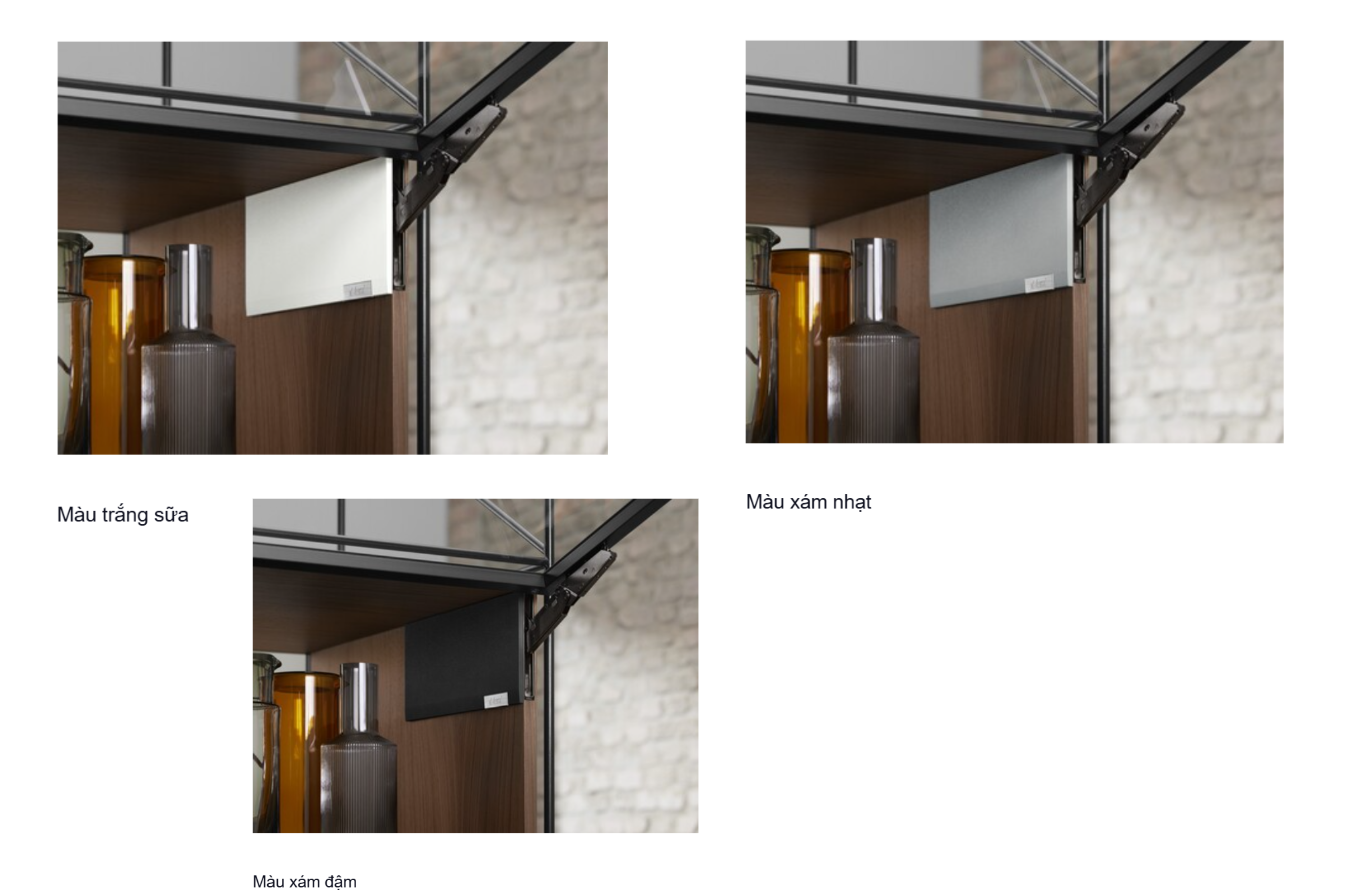 Tay nâng Blum Aventos HKI với 3 màu sắc trắng sữa, xám nhạt, xám đậm
